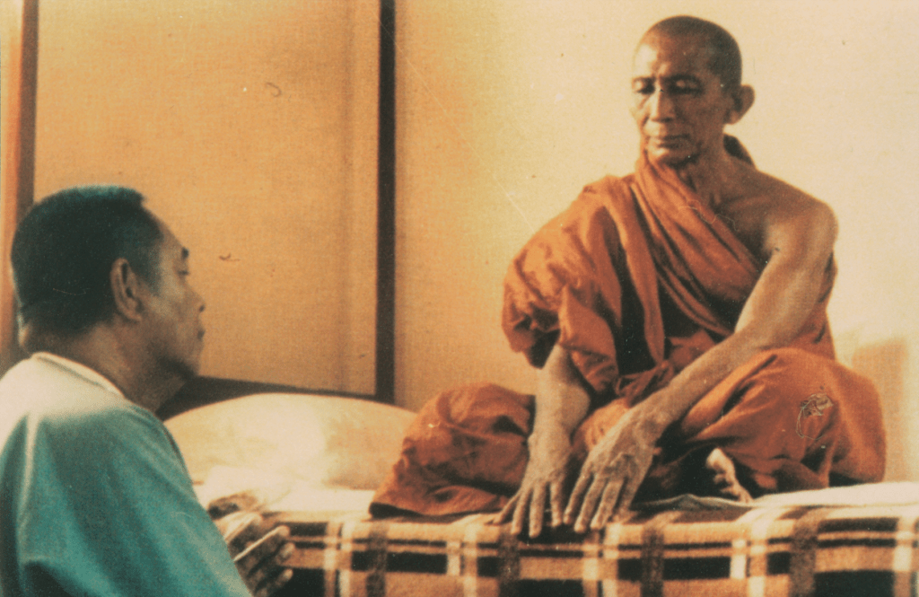 Then Elder Maha Naga recognized that he was still an ordinary man. He knelt at Dhammadinna’s feet and said ‘Help me, friend, Dhammadinna’. – ‘Venerable sir, I will help you; that is why I came. Do not worry.’ Then he taught him a meditation subject. The Elder Mahā-Nāga took the meditation subject and went up on to the walk, and with the third footstep he reached Arahatship.
