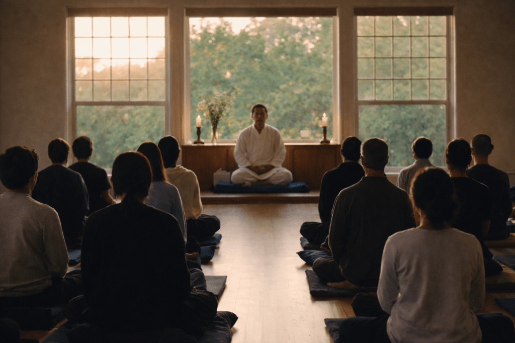 (Illustrative Vipassana meditation setting)
