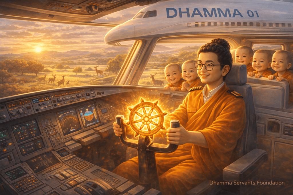 This moment symbolized the first turning of the Wheel of Dhamma, as the Buddha’s teaching began to spread from teacher to disciple.